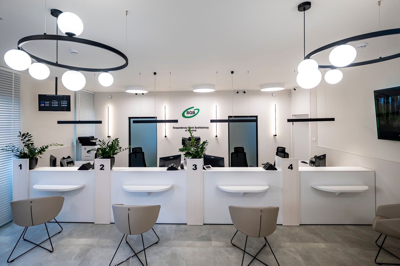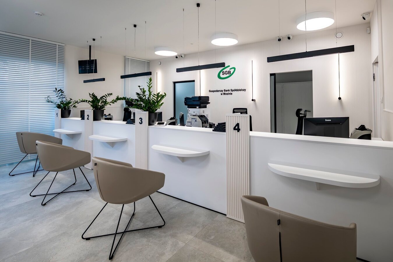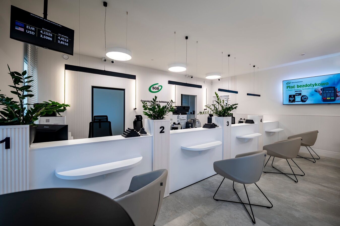 Nowa przestrzeń oddziału została zaprojektowana z myślą o komforcie, funkcjonalności oraz nowoczesnym standardzie obsługi. Odświeżone wnętrze łączy estetykę z praktycznymi rozwiązaniami, tworząc przyjazne miejsce do rozmów o finansach i realizacji codziennych spraw bankowych.